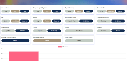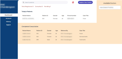 Primary Health Center that consists of a portal where new patients get registered by filling in all the details by the PHC technician. Once they’re done with all the formalities, the system will automatically generate their Patient ID (unique identifier). Existing patients can directly enroll by disclosing their Patient ID allotted earlier. The PHC doctor will fill in the case details page (symptoms, vitals, medical history, etc.) and refer to the doctor accordingly.